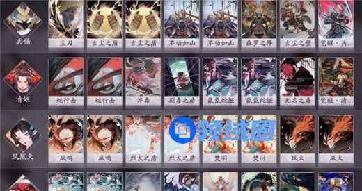 阵容名: 兵俑 森罗之阵 (1) 古尘之壁 (1) 觉醒·兵俑 (1) 古尘之盾 (2) 尘刀 (1) 不动如山 (2) 清姬 蛇行击 (2) 淬毒 (1) 氤氲蛇姬 (2) 无名之毒 (1) 觉醒·清姬 (1) 剧毒之盾 (1) 凤凰火 凤鸣 (2) 焚羽 (2) 凤火 (2) 烈火之盾 (2) 海坊主 治愈之水 (2) 灵能 (1) 水龙卷 (1) 祝福之水 (1) 蹈海 (1) 巨浪 (1) 觉醒·海坊主 (1)
