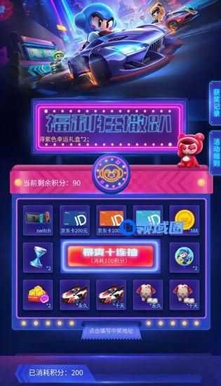 奖池之中除了永久的赤影威龙、华为专属的棒球服、甚至还有京东卡和NS等实物奖品,只需消耗积分即可。