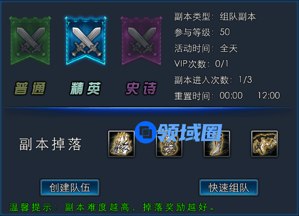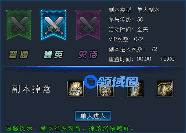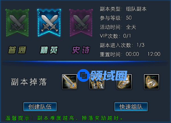 副本难度分为: