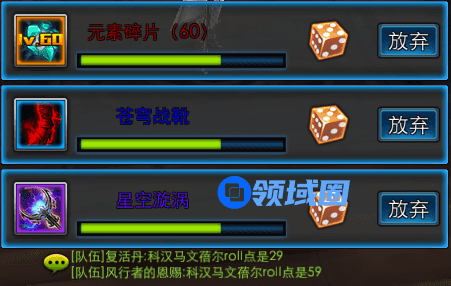 组队副本中装备道具的分配是roll点决定,也就是拼人品喽!