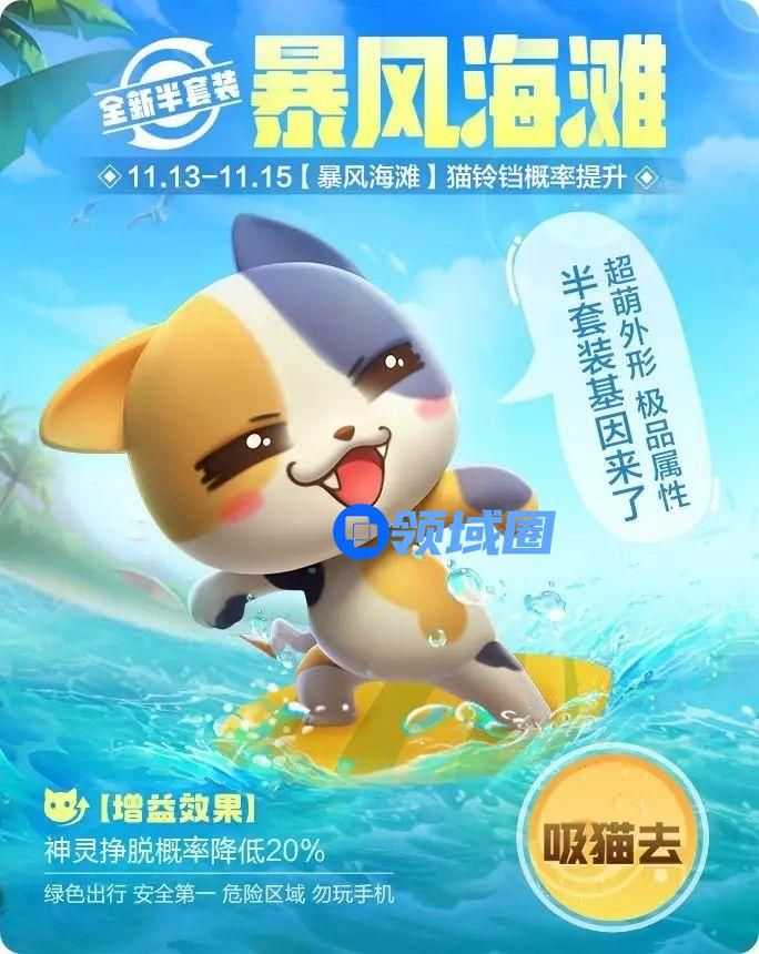 全新半套装基因-【暴风海滩】出现,增益效果为神灵挣脱概率降低20%!活动期间,带新基因的猫铃铛出现概率提升,记得要及时入手哦!