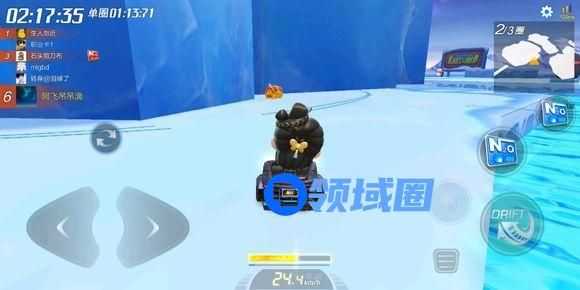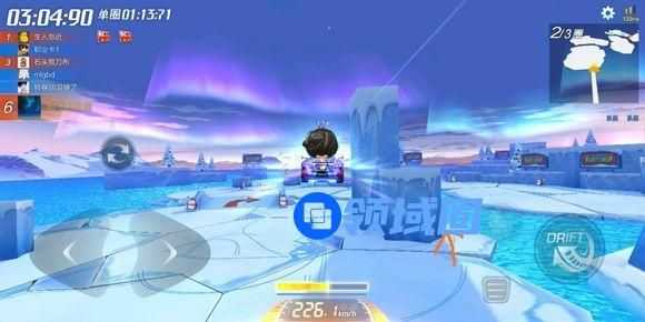 冰峰裂谷这张图的复杂性还是有点高的,如果是不熟悉图的玩家可能正常跑都会吃亏,何况还要找宝箱,有不少玩家可能跑了三圈都没看到宝箱的位置甚至最后比赛都没能顺利完成,还得重新再开一局然后慢慢找。而实际上这个宝箱的位置就在如上图所示的第一个冰岛跳台之上,只不过是在一侧的冰壁的后方难以看见。