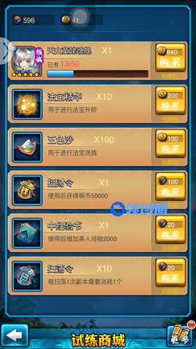 商城购买:在少年们心痒难耐,特别想进阶法宝时,可通过商城直接购买法宝精华进阶。10个法宝精华需要50元宝,每日购买达到上限后就无法继续购买啦。