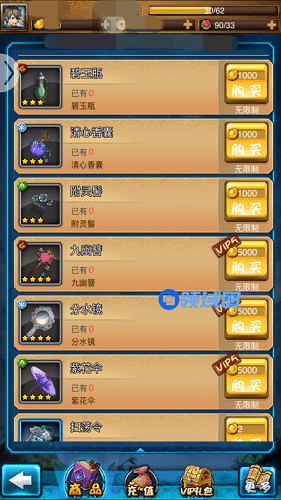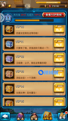 身为vip,怎能没特权?各位vip的少年们,这里还有vip特权礼包等你来买哦。V10的礼包中含有四星法宝、V13的礼包中含有的五星法宝,经济实惠,你,值得拥有!