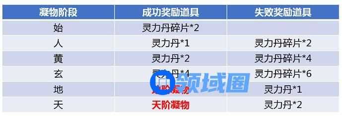 3)每次凝物失败后可获得1点凝物值,当凝物值达到对应阶段要求时将100%凝物成功,每次成功都将清空当前凝物值。