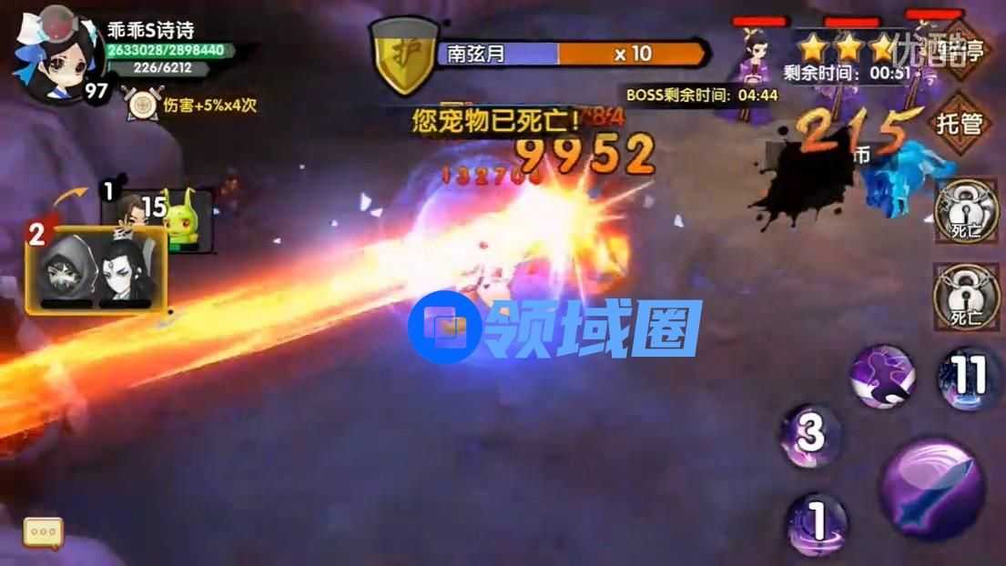 然后召唤得力打手组合——东华灵宠+白子画灵宠,同时还得小心BOSS南弦月施放的究极无敌超能宇宙动感必杀光束。