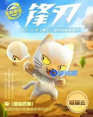 全新基因-【锋刃】出现,增益效果为捉妖时有8%的概率获得的符印+1!活动期间,带新基因的猫铃铛出现概率提升,记得要及时入手哦!