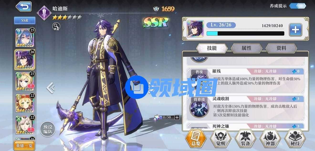 灵魂收割,这个技能如同yys里面黑童子技能,残血收割利器,所以不要速度石头,最好最后一个出手,或倒数第二出手,能够一口气收割。