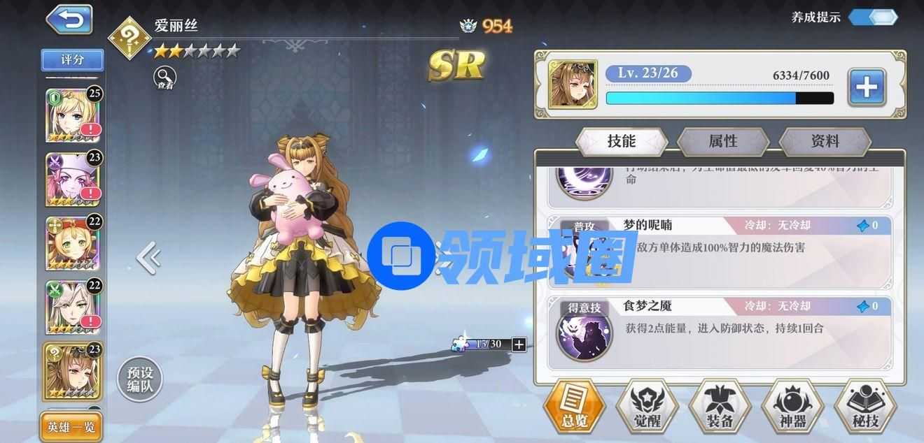 食梦技能,最好在能够镶嵌宝石劲量把速度石头给她,这样保证了输出的火量,不然,你会感到等到哈迪斯输出的时候没有火的尴尬。这样下来最后补位,可以看需求,加盾或奶,不过一般来说我是盾