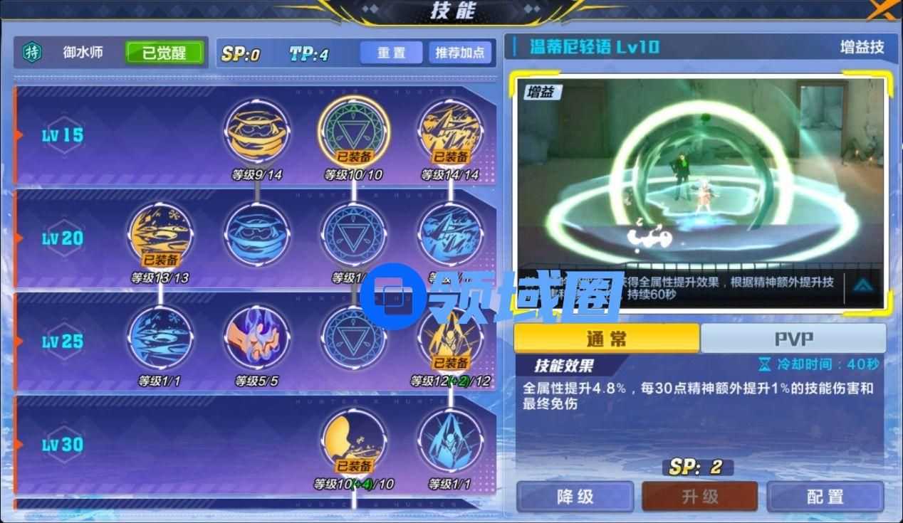 加点方面除水晶之盾和绝对领域之外的技能都尽量加满,有多余的再考虑这两个技能,这两个团队型技能加点收益太小。BUFF技能带温蒂尼的轻语并且点满所有强化。
