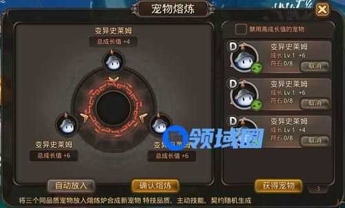 3、熔炼需要消耗一定数量的相同品质的宠物。