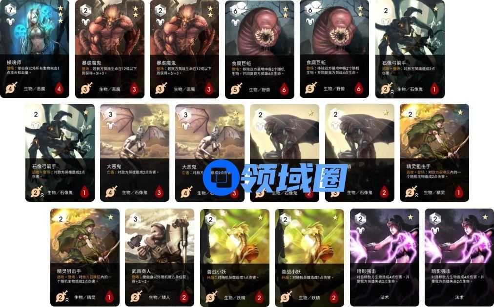擅长去除与快速进攻的蕾比在卡组上的选择多以进攻型的生物作为主力,但因为英雄技能的副作用,适时的防守也是重要的一环,牌组构筑如下: