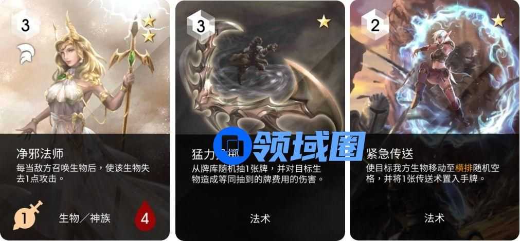 在生物对战中难以落败的神族,最害怕的就是缺少后续的手牌,猛力投掷可以同时做到去除及抽牌的效果,由于点数普遍偏大的关系,能保证一定的伤害。遇到对方挡不停的小生物? 用紧急传送可以解决9成的问题,可以重复使用的特性,让对方挡也挡不住。
