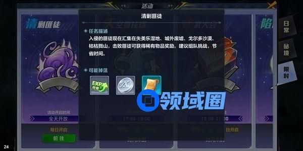 虽然活动副本的难度不算高,但是副本中的敌人比较多,而且等级与自身相同血量较高,普通装备可能需要消耗较长时间才能通关,因此可以与等级相近的玩家进行组队(也可以让装备好的朋友带一下),在组队界面的“前往活动”选项中选择清剿劫匪。可以大大提升效率。