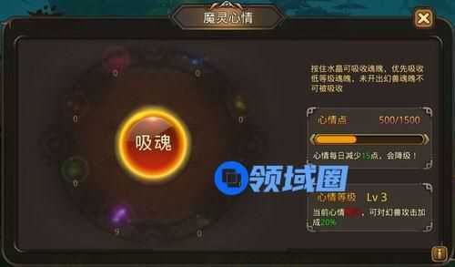 1、魔灵可以通过吸魂来提升心情,从而提高魔灵作战的能力