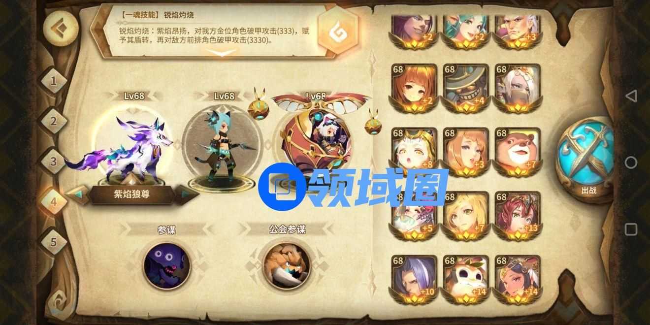 第一战 海德3.6w+12w+3.6w+12w,开头白一魂,金三,黑一,不要让海德招出魔物,尽可能的叠紫狼被动,满三层易伤可以适当给前排加盾,打死海德也不要记着打掉那个大的,攒点金魂为下一战做准备第二战。