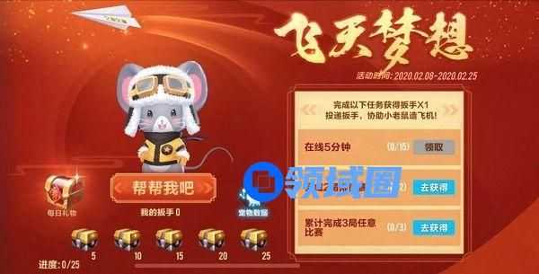 在2月8日-2月25日期间,完成每日任务可获得万能扳手。