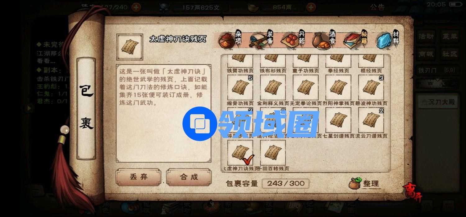 副本内掉落太虚残页,以及镇派轻功千回百转残页。