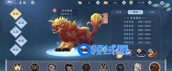 年兽是新红色宠物,资质略高于老虎(低于125) 技能暂无成长数据,目测略强于老虎!