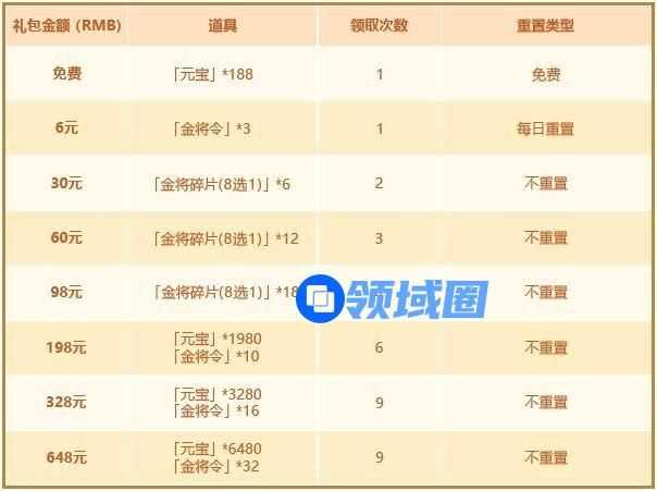 要注意的是,本次因为八大金将同时进入卡池,所以少年们最后的积分排行奖励,是金将碎片(8选1)!抽取的碎片,也为该阵营金将的碎片二选一宝箱,这样少年们就可以根据自己的情况,选择开出自己阵营喜欢的金将啦!PS:如果少年们欧皇附体,抽出完整的金将,他们只会是郭嘉/刘备/陆逊/贾诩 这四个其中之一哦,会根据少年们选择的阵营来产出对应阵营的武将!金将令可以通过元宝兑换,循环充值以及登录活跃等途径获取~