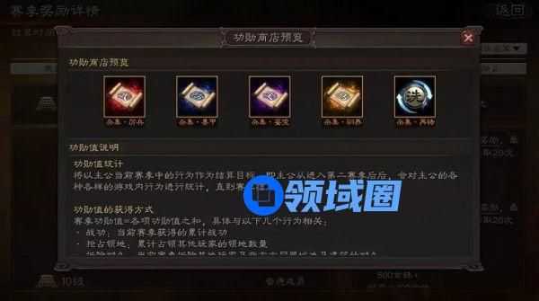 S3赛季开启后,将根据S2赛季的战功、攻城、拆除耐久、抢占领地、成就评价等方式计算并发放功勋。功勋可以在功勋商店兑换限定道具等封赏奖励。
