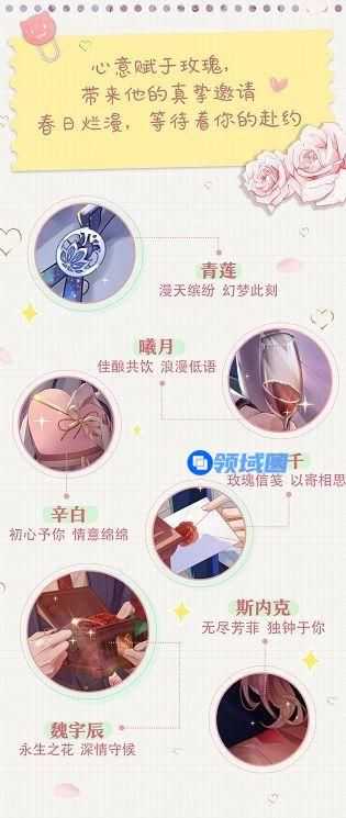 此次情人节活动的暂定名称已经公布,就是玫瑰心约,而从这个名字也可以看出很可能会包含约会的角色剧情。尽管官方还未具体交代此次活动的日期和内容,但是也在近期放出了一张带有一定线索的邀请函,如下图。