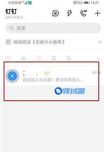 第一步手机上打开钉钉,找到要直播的群,点击进去,如下图所示: