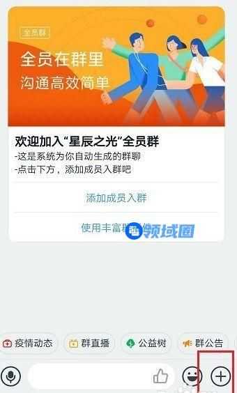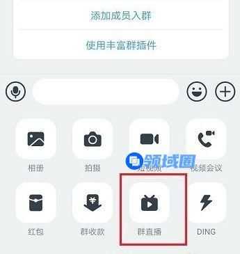 第二步进去钉钉直播的群界面之后,点击+号图标,如下图所示: