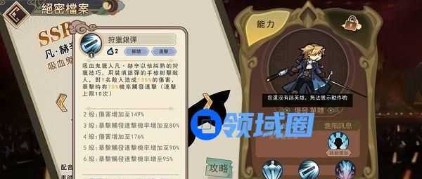 小技能狩猎银弹就是范海辛最值得关注的技能,满级情况下暴击则高概率触发连击以及最高10次的超高伤害上限让其成为了不少玩家手中的搏命新星。