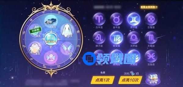 当第2、4、6、7、9、12个星座被点亮,各可获得一次祈愿机会,总共有6次祈愿机会,可在左侧祈愿星盘中一一抽取奖励,奖励不放回。
