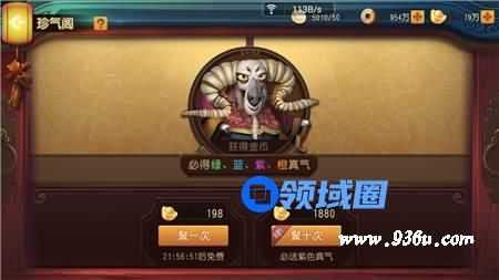 1、珍气阁中珍宝无数,聚气时必得100金币,并免费获赠绿、蓝、紫、橙色品质的真气。
