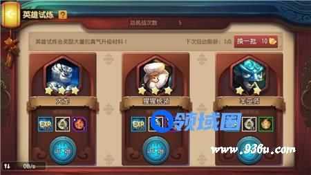 2、英雄试炼是一个随机挑战型玩法,每天凌晨3点、中午12点、下午5点,会随机刷新出3位大师的试炼供您选择。同时,您也可以选择通过元宝立即刷新试炼内容。