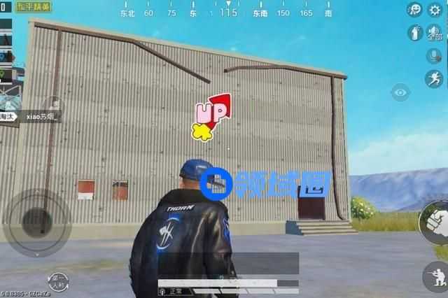如图所示,这是那位粉丝投稿的游戏素材。这是军事基地的一处游戏场景,在军事基地的大房子的外墙,有一个类似于火箭的喷涂。