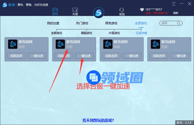 选择台服,点击一键加速。