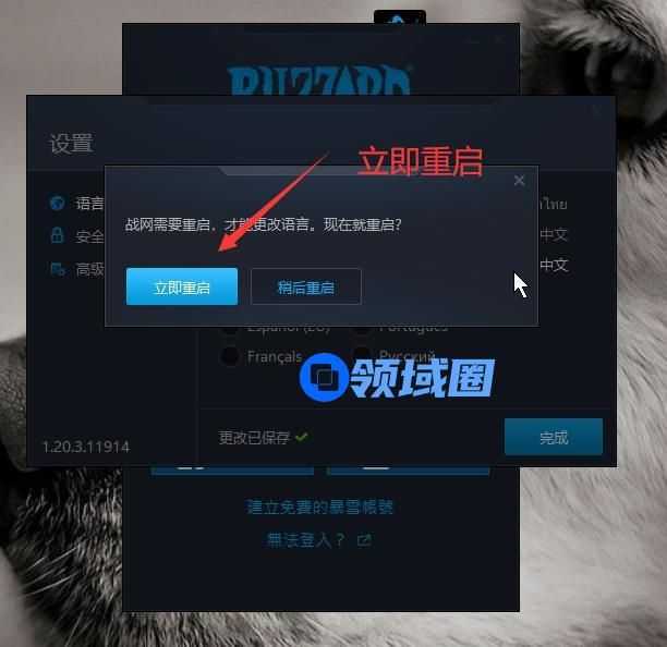 选择之后会提示重启战网。点击重启。