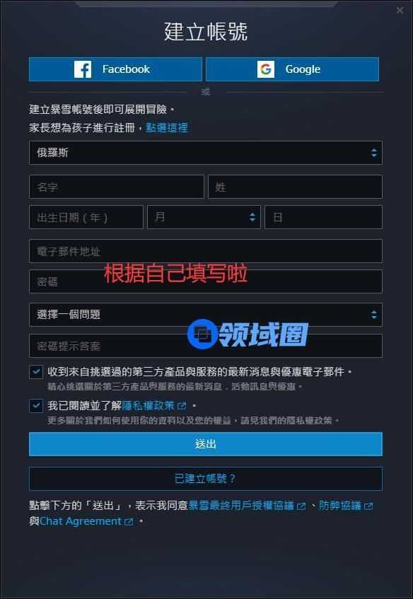 点击建立免费的暴雪账号~