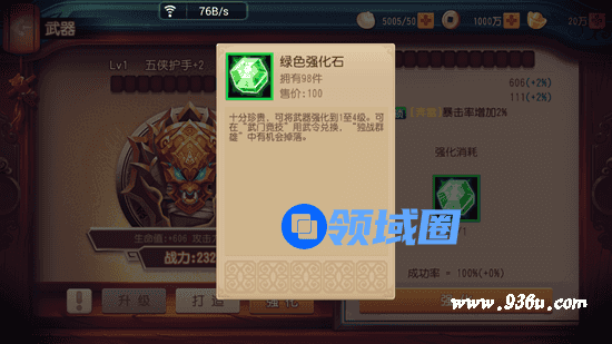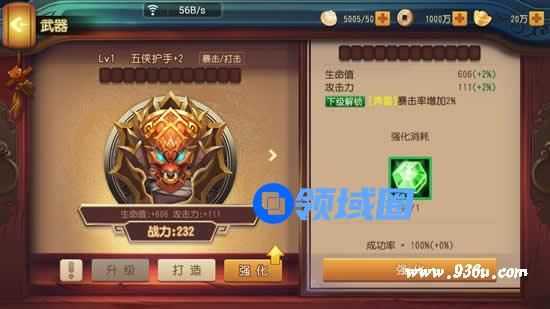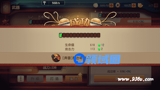 3、强化成功提升战力、生命值、攻击力、武器特性数值。