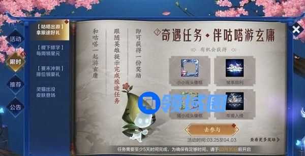 王者荣耀伴咕嗒游玄雍活动如何参与?细心的玩家一定在王者荣耀界面发现了隐藏的奇遇伴咕嗒游玄雍,不过还是有很多玩家不知道怎么玩,也不知道最后的奖励是什么,那么就由小编为大家带来详细的玩法一览吧。