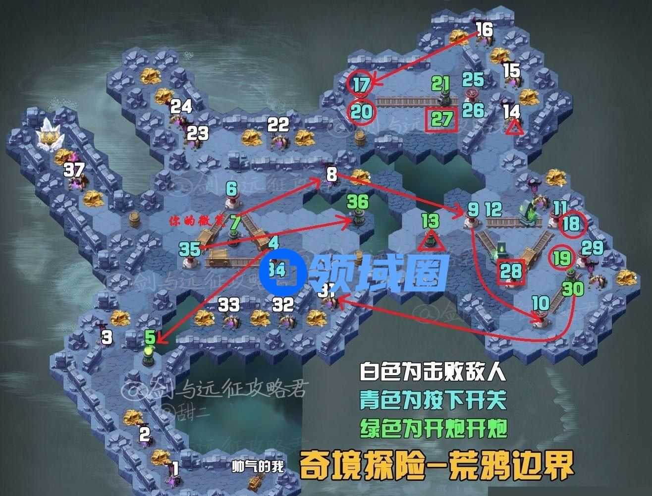 2020年4月9日,开放周年庆活动,以及新奇境图的很多奖励。先放一张剑与远征攻略君的总揽图,方便大家定位。数字码有的叠加在一起了大家不要乱,严格按照数字码顺序走就行!没玩过奇境的萌新小白同学,看图里转盘是点击一下,联动轨道上的箱子移动的机关哦!