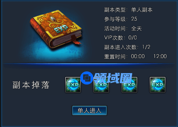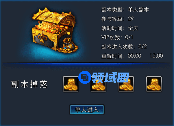 PS:每天可以进入2次,第二天次数重置,如果成为对应VIP的话可以额外增加一次进入次数噢!