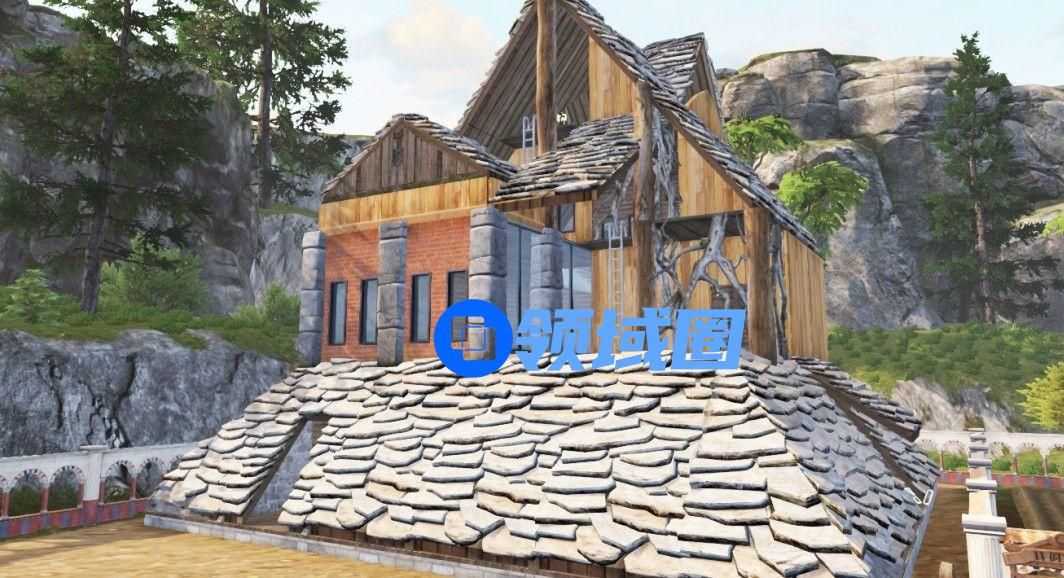 先来看看别墅的屋顶,与别墅的地基相同,均是由石砌斜面建造而成。