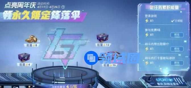 事实上,这个精英勋章的用途主要是用来兑换任务中的能量值,在周年庆永久限定降落伞任务里,1个勋章可以获得1个能量值,当能力值达到16点的时候就可以获得一个永久的限定周年庆降落伞皮肤。