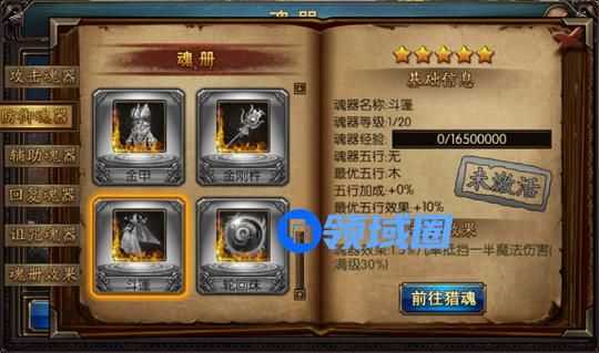 金甲魂器拥有着强大的物理防御属性,效果通过五行属性加成以及魂器自身等级加成后最高可达40%几率抵挡一半物理伤害,战斗中多一次抵挡效果的触发,则可能决定了一场战斗的胜负。