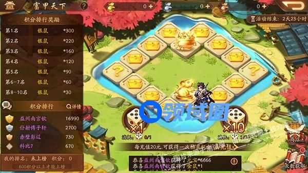 排行榜为本服排行榜,一共有前10名。排名不同可获得不同数量的银鼠。