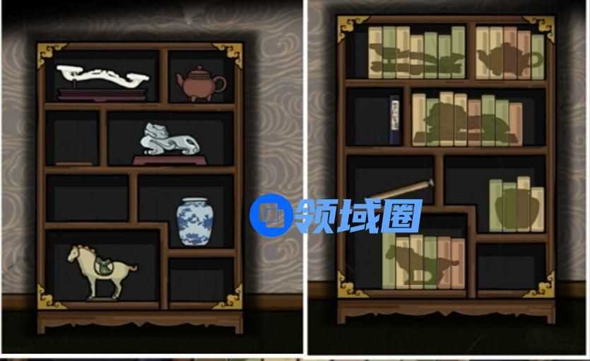 2.点击右边书橱拼好柜中5样物品,再依据右边柜子的图画对应左面的柜子中的什物(注:左面柜子有必要依据物品的巨细移动到适宜的格子,和实际中一样要拿起一件东西再放下另一件东西)