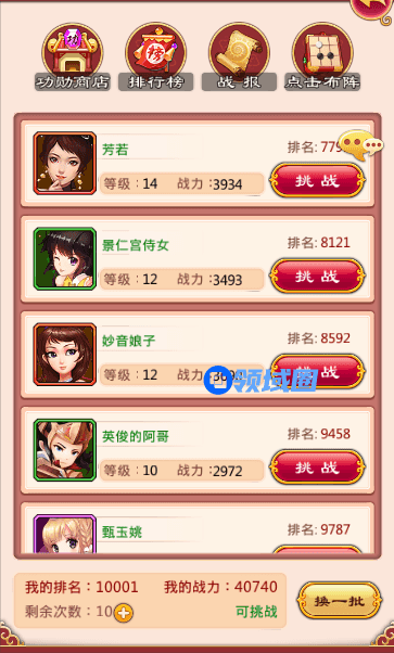 小主可以通过竞技场寻找对手,通过击败对手提升排名;