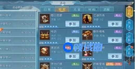 3.日常活动—守护红颜+江湖历练+演武场+灵台幻境+每日答题+传功