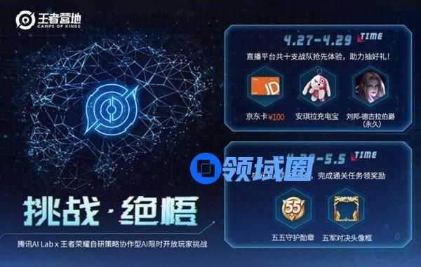 在5月1日~5月4日期间,大家在进入游戏后,可以通过大厅入口参与挑战绝悟的限时活动,AI“绝悟”首次进行交手。活动结束后,绝悟也将暂别王者峡谷,继续履行他的远大使命——将其在峡谷磨练的智能决策与协作技能应用于现实、服务人类。本次活动机会难得,有兴趣的召唤师们准备好挑战吧!
