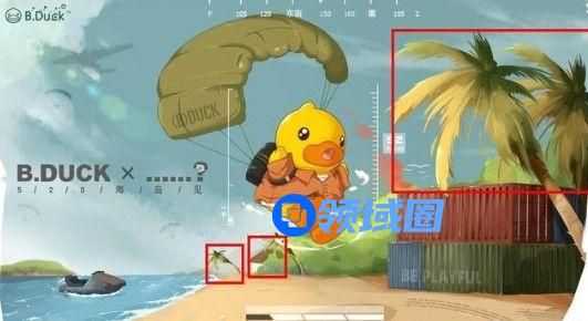 除了官宣的图片以外,我们在BDUCK小黄鸭的官方WB,还发现了另外一张有趣的图片。这张图片的内容,是一只胖乎乎的小黄鸭,背着绿色的降落伞从空中,降落到了海岛上。