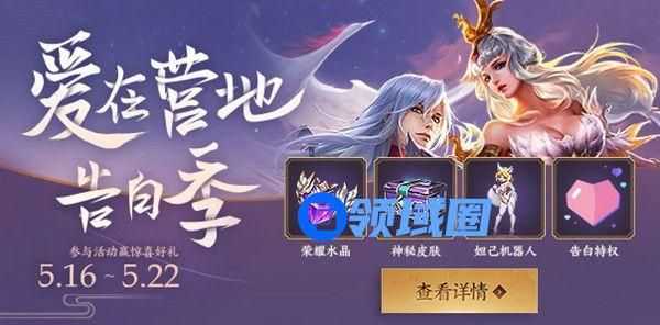 王者荣耀爱在营地告白季活动有什么内容?在今日开启的新活动也是为了迎接520的到来,玩家们可在本次活动中有几率拿到超级丰厚的奖励,其中就包括非常稀有的荣耀水晶,可兑换各类限定皮肤。下面就为大家带来爱在营地告白季活动介绍。